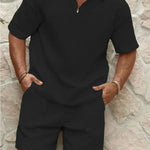 Svestran set: Dvodijelni set za muškarce sastoji se od lagane košulje i kratkih hlača, idealnih za ljetne aktivnosti od izleta na plažu do druženja s prijateljima.