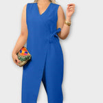 Otkrivanje istaknutog komada za sofisticirani izgled od jutra do večeri. Naš jednobojni kombinezon s V-izrezom i vezanim remenom savršena je kombinacija stila i udobnosti, obavezno ga je imati u svom ormaru.
