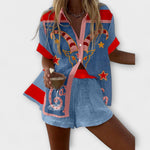 Doživi ljeto s Outfitom Jorelle. Ova kombinacija sastoji se od živopisnog uzorka koze i laganog materijala koji tvom izgledu daje razigran dodir. Savršeno za posjet tržnici ili opuštene poslijepodneve na otvorenom, Jorelle unosi svježu energiju u tvoju garderobu.