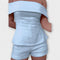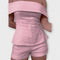 Ovaj stilizirani dvodijelni set kombinira udobnost i modu, a sastoji se od visokokvalitetne mješavine poliestra i pamuka. Set uključuje elegantni crop-top s dugmadi i odgovarajuće hlače, savršene za svaku priliku.