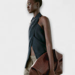 - Izrez na leđima s vezicom: Podesiv i ženstven, stvara elegantan efekt otvorenih leđa.