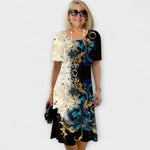 Paket uključuje: 1 * Ljetna haljina Floral Breeze – Okrugli izrez, kratki rukavi, cvjetni uzorak
