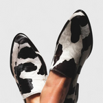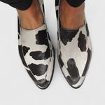 Strukturirana udobnost s privlačnim dizajnom za svakodnevnu upotrebu. Mokasini Macarena kombiniraju eleganciju šiljatog oblika s bijelim i crnim životinjskim uzorkom. Njihova niska potpetica, visokokvalitetni materijali i udoban kroj čine ih idealnim izborom za bezbrižan stil.