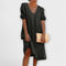 - V-izrez s dugmadima: Ističe dekolte i daje haljini elegantan naglasak.