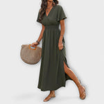 Heather - Elegantna Boho haljina s V-izrezom i dugim rukavima