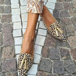 Leopoldine loaferice savršena su sinteza urbane elegancije i divlje duhovitosti. Uski dizajn kombinira se s bezvremenskim životinjskim uzorkom, koji dodatno naglašavaju zlatne resice, donoseći svjetlost i pokret u svaki korak. Idealni model za one koji vole biti u centru pažnje, a da pritom ne odustaju od praktičnosti.