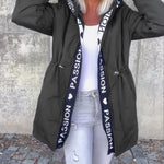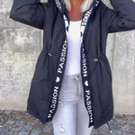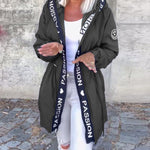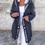 Ležerna jakna s kapuljačom i vezicom u uzorku slova
