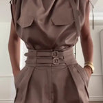 Luz kompletić: krojena bluzica & hlače savršeni su izbor za žene koje traže moderan, elegantan izgled za proljeće i ljeto 2025. Godine. Dizajniran s oblikujućom siluetom i opremljen karakterističnim detaljem na remenu, ovaj set nudi svestrane mogućnosti stiliziranja koje se lako prilagođavaju svakoj prilici.