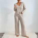 Luma kombinira jasan dizajn s ultimativnom udobnošću. Ovaj dvodijelni set od rebrastog materijala sastoji se od mekog i ugodnog materijala. Sa svojim ležernim krojem, Luma je savršena za opuštanje kod kuće, kao i za šik i opušten izgled u svakodnevnom životu. Set se sastoji od pulovera s elegantnim V-izrezom i odgovarajućih hlača s fleksibilnim i udobnim krojem.