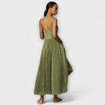 Ukrašena dynamickim allover naborima, ova haljina nudi razigrani kroj koji je savršen za svaku priliku, od koktel zabava do elegantnih brunchova. Moderni dodir tila dodaje jedinstvenost vašoj garderobi.