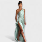 Otkrijte našu maxi haljinu s jednim ramenom koja spaja jednostavnu rafiniranost s tekućim, ženstvenim stilom. Idealna za žene koje cijene jasne oblike i otvorena ramena u elegantnom izgledu.