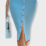 Unesite svoju garderobu s elegantnom baby plavom haljinom s rebrastim uzorkom i kontrastnim detaljima!